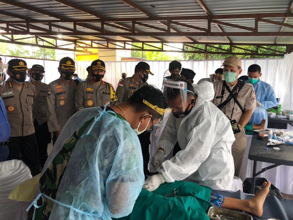 IDNPRO.CO, Batam – Polresta Barelang melaksanakan kegiatan Satgas Nusantara Subsatgas Kemitraan Bakti Sosial dan Bakti Kesehatan dalam rangka Cooling System Pilkada 2020 dan pencegahan Covid – 19 di Mako Polresta Barelang, Kamis (17/9/2020) sekira pukul 08.30 WIB.