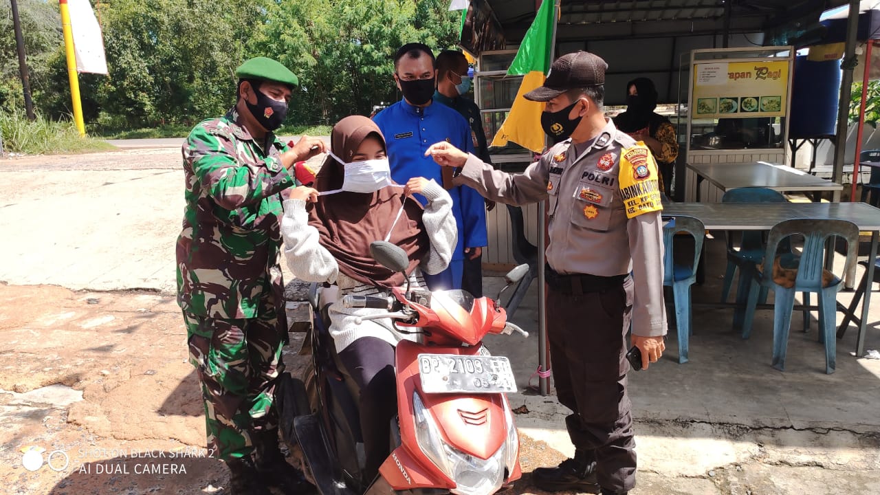 “Pembagian dan pemasangan masker kepada masyarakat dan pengguna kendaraan bermotor yg tidak menggunakan masker di sekitar pasar Melcem dan kawasan MC Mart oleh tim gugus tugas Covid-19,” ungkapnya.