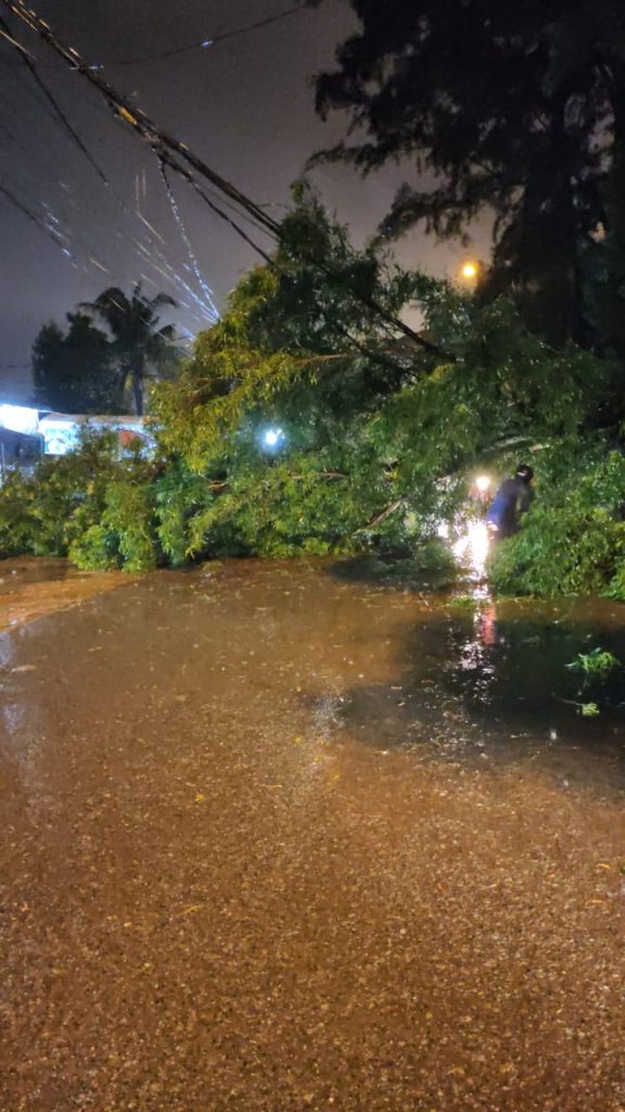“Laporan tim di lapangan ada satu pohon yang tumbang dan sempat menutup akses jalan utama,” katanya.