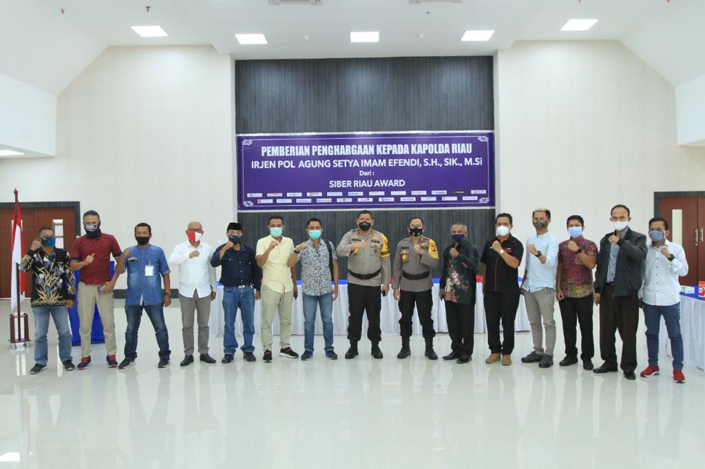 IDNPRO, Pelalawan – Kapolda Riau, Irjen Pol Agung Setya Imam Efendi menerima Penghargaan dari Siber Riau Award di Aula Tribrata Mapolda Riau Jl. Pattimura No.13 Pekanbaru tadi pagi Selasa (12/01/2021)