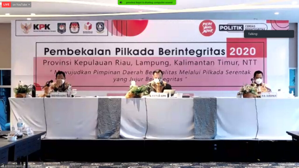 IDNPRO.CO, Batam – Ketua Komisi Pemberantasan Korupsi (KPK) Firli Bahuri menyatakan pengusutan laporan dugaan tindak pidana korupsi kepala daerah tetap berlangsung meski sejumlah daerah sedang melaksanakan proses Pemilihan Kepala Daerah (Pilkada). Afirmasi ini disampaikan dalam Pembekalan Calon Kepala Daerah (Cakada) Provinsi Kepulauan Riau, Lampung, Kalimantan Timur (Kaltim), dan Nusa Tenggara Timur (NTT), bertempat di Ruang Rapat Hotel Radisson Golf and Convention Center Kota Batam, Selasa, 10 November 2020. Peserta di Lampung, Kaltim, dan NTT, mengikuti pembekalan secara daring.