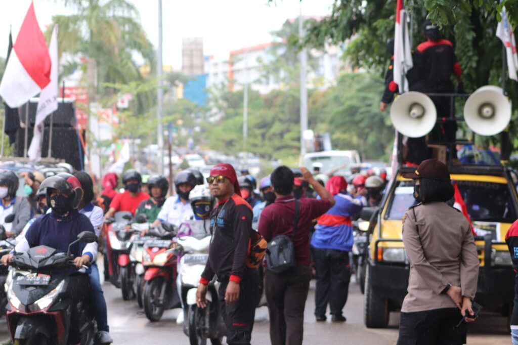 Aksi Unras yang berjalan damai dengan mengedepankan Tim Negosiator Polwan Polresta Barelang dipimpin Kasat Lantas Kompol Yunita Stevani, Kapolsek Batam Kota AKP Restia Octane Guchi serta Kasubbag Bin Ops AKP Zalina. Mereka dilapisi oleh Tim Dalmas Awal Sat Sabhara Polresta Barelang.